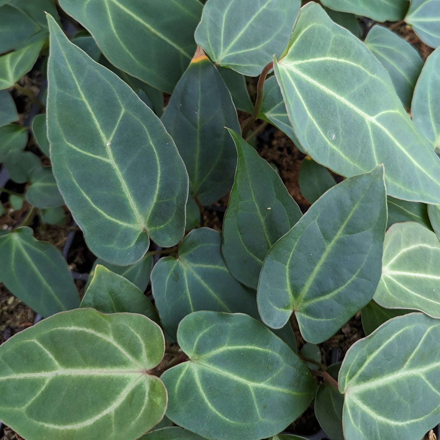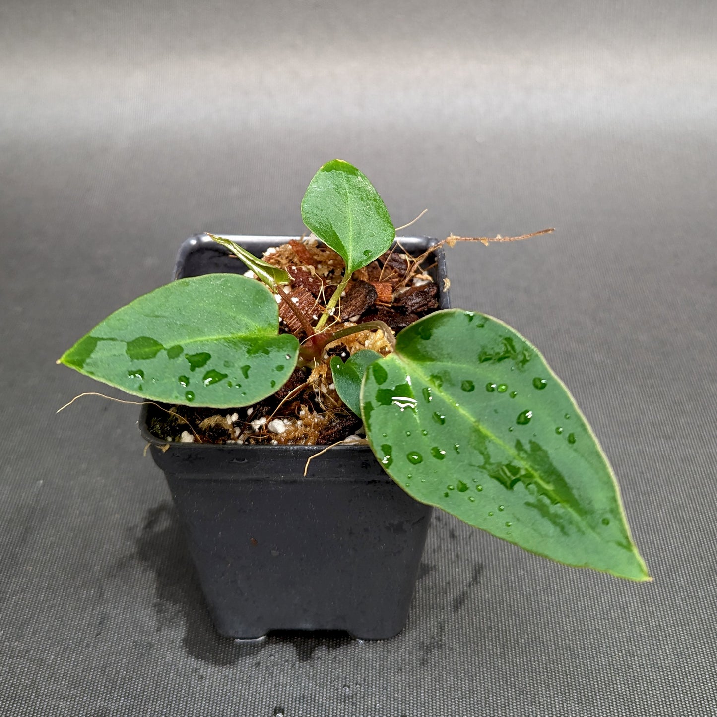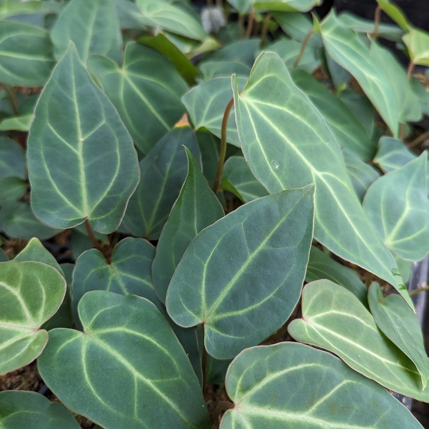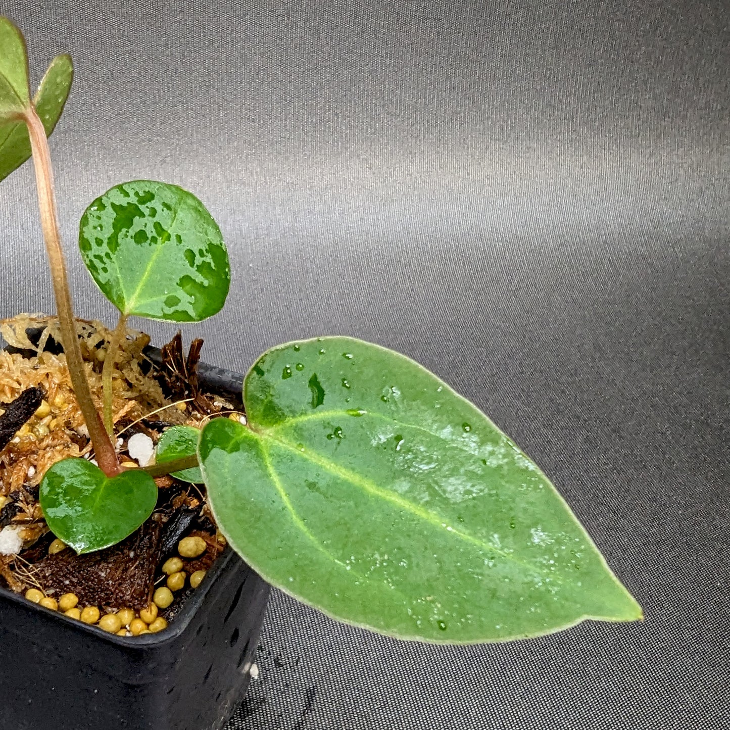 Anthurium magnificum 5 x sp. Nov. Darien (bessae aff) is a stunning and vigorous cross. These have it all: stunning emergent leaves, velvet texture, incredible sheen and vigorous growth!