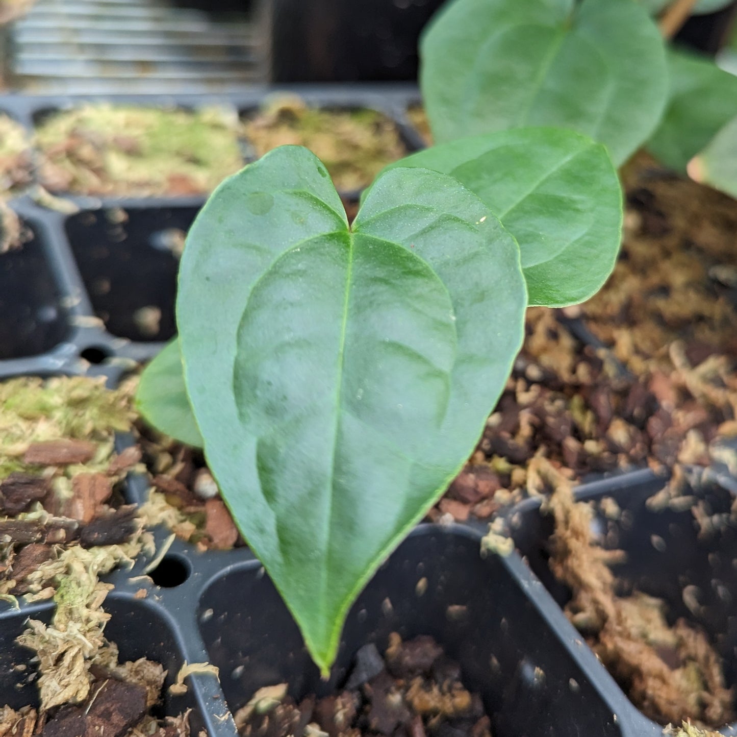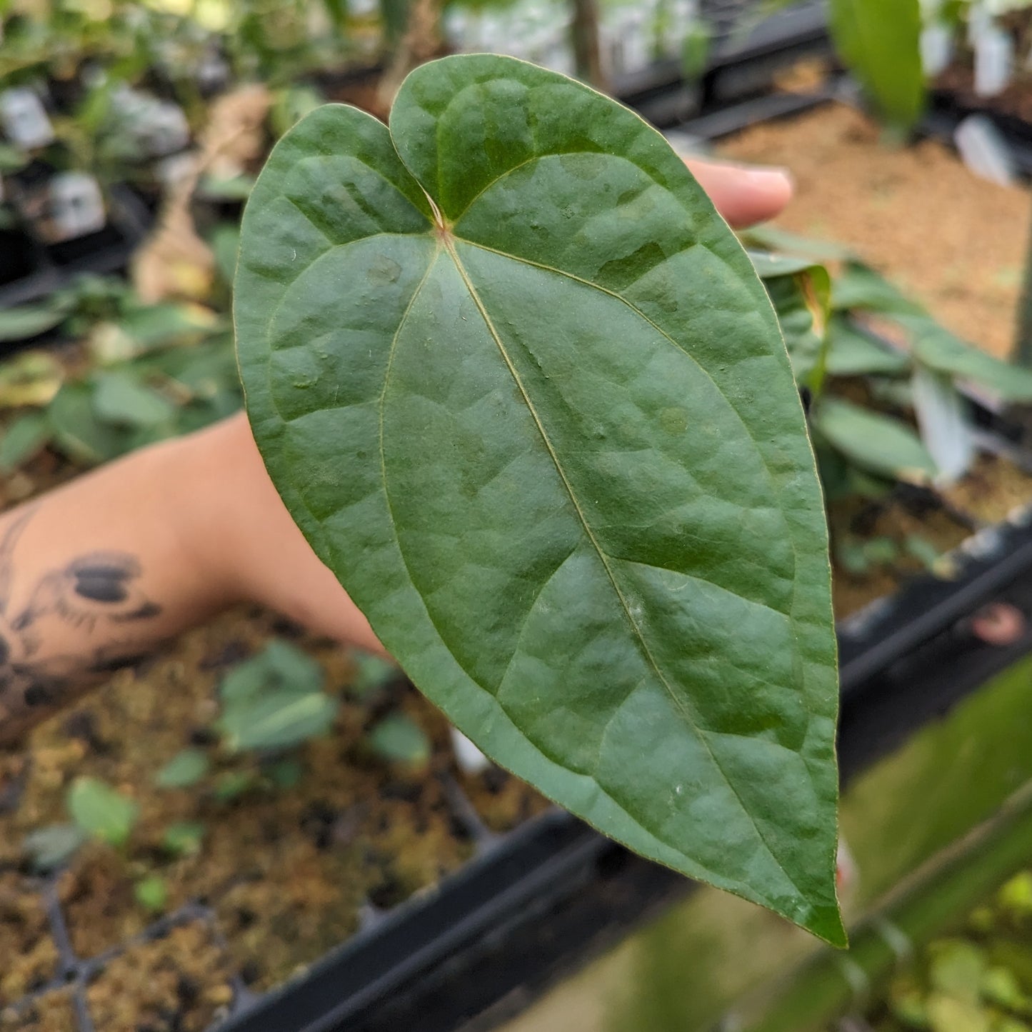 Anthurium (Red Crystallinum x magnificum) x debilis, CAR-0354 is one of our newly released hybrids with amazing potential given its stunning parents. The female parent came as a standout individual from Tezula Plants and is like a Red Crystallinum on steroids. The male plant is a stunning debilis that should introduce amazing texture and emergent color. Very limited supply on these. Don't miss out!