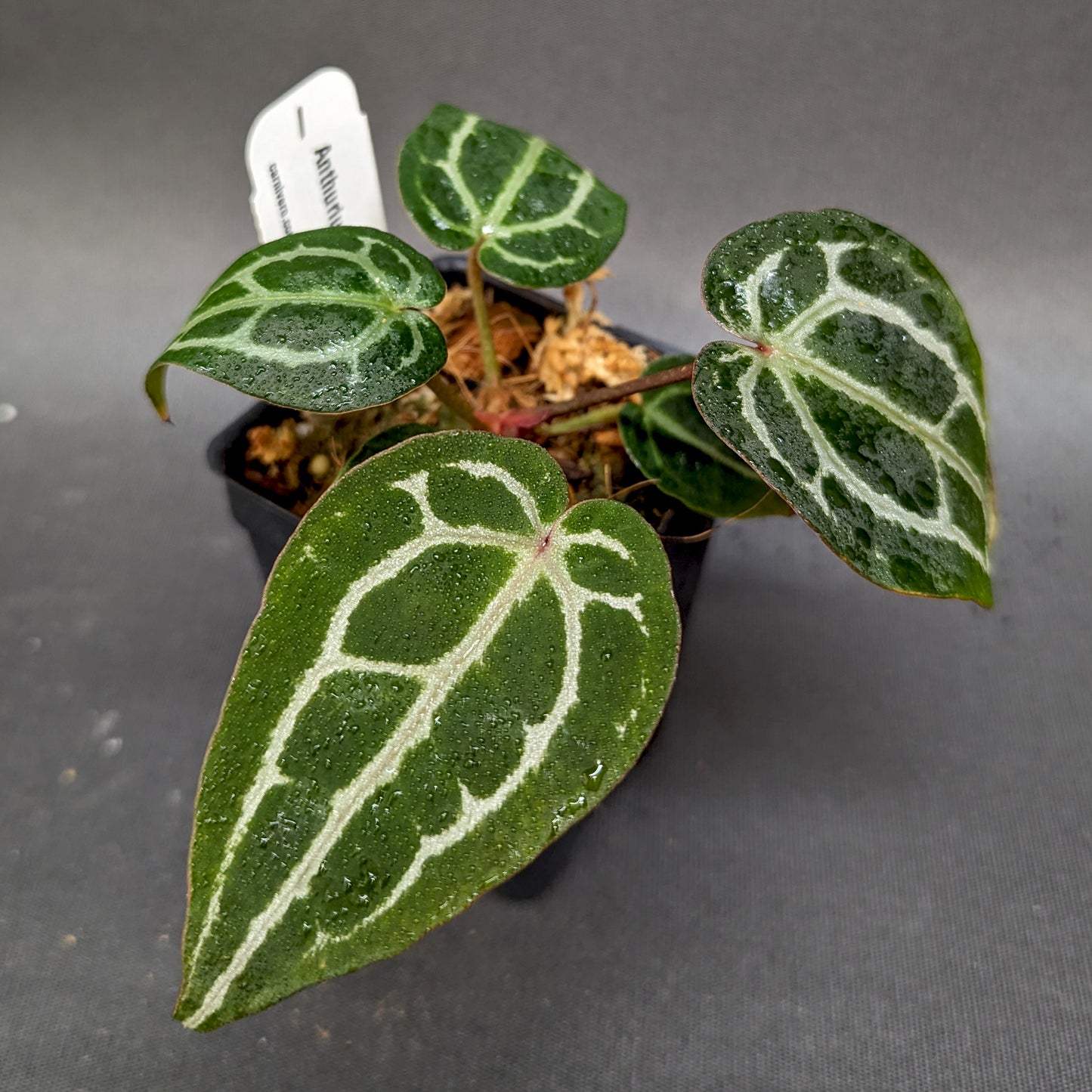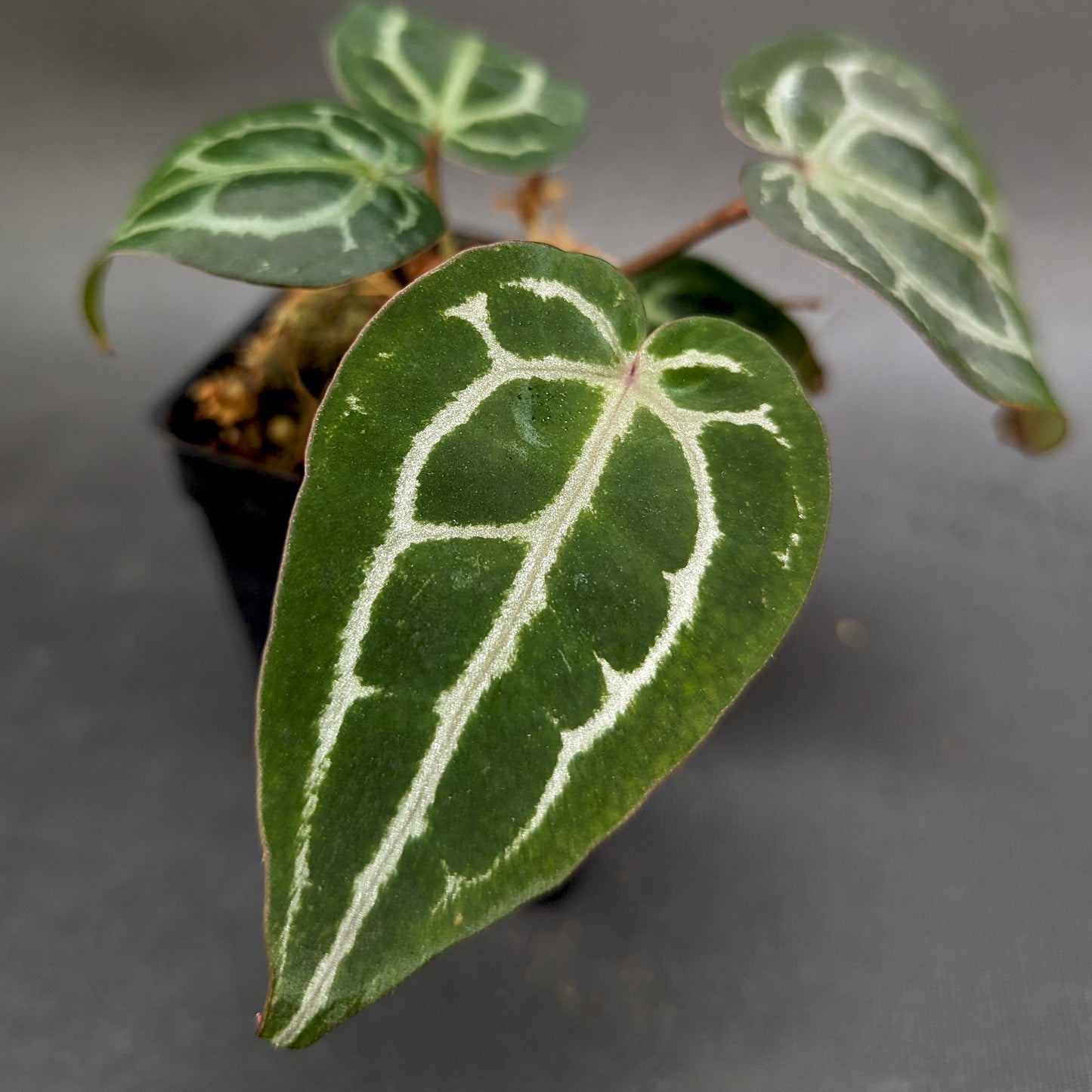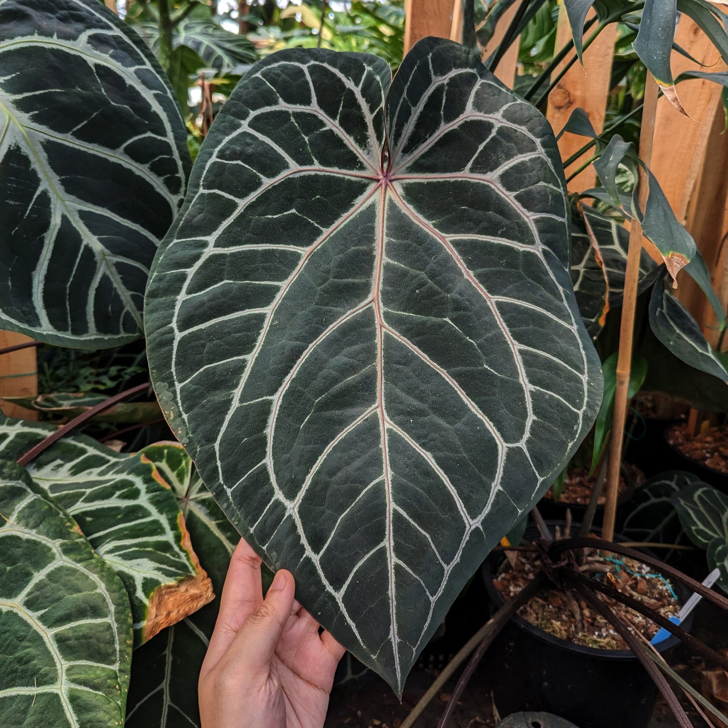 Anthurium Zara x Michelle F2 is one of the most stunning Anthuriums with intricate silver veining and red centers complimenting the dark heart-shaped leaves. The renown Florida breeder, Doc Block has produced some of the finest red emergent foliage Anthuriums the world has ever seen. The parents of this cross come from standout parents from this breeding line.