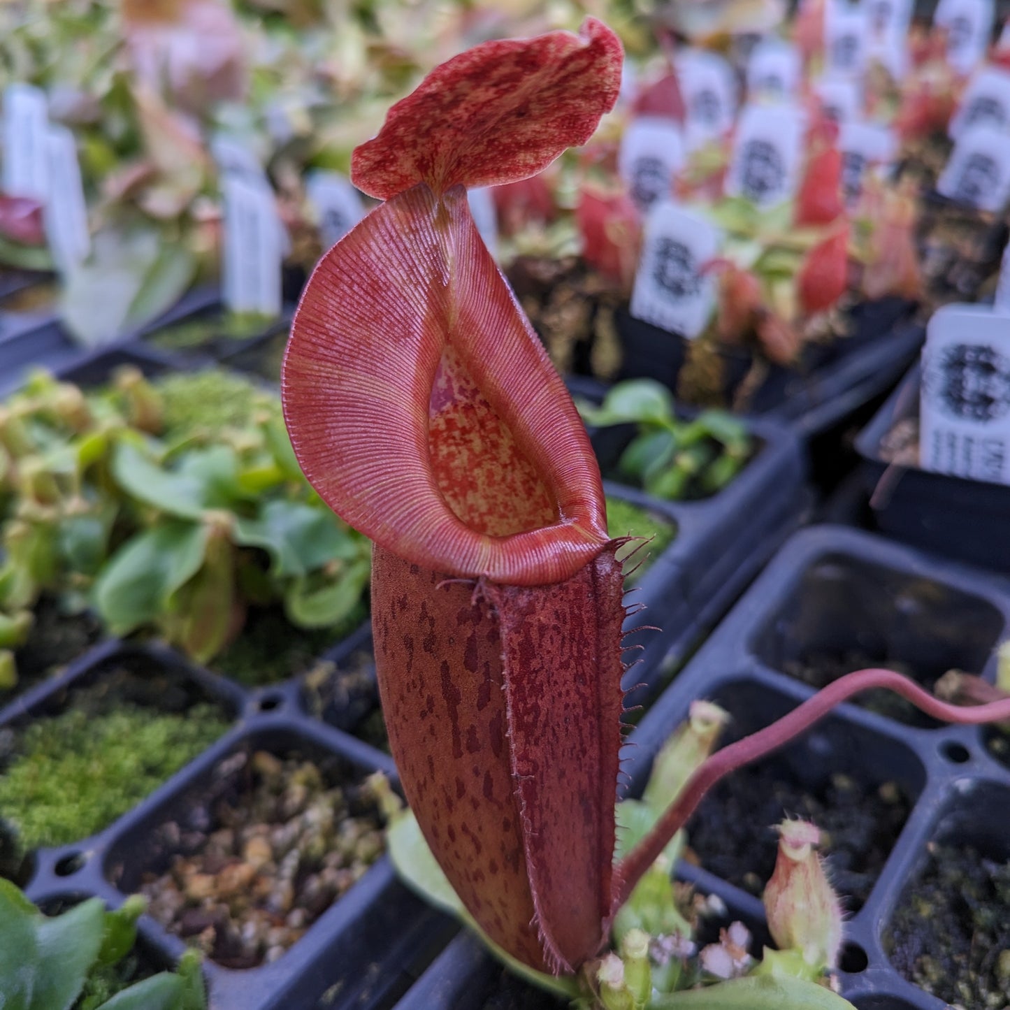 A stunning hybrid from Carnivero's breeding stable. These are vigorous growers suitable for a wide range of temperatures. Wide peristomes with cherry red coloration, need we say more?