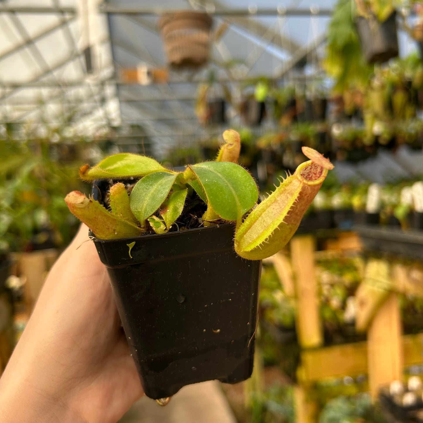 Nepenthes veitchii [BE-4033 x (Akazukin x Bareo)] brings together two parents known for their squat, robust pitchers with vividly flared and intricately striped peristomes, showcasing the iconic beauty that makes this species so sought after. This cross holds incredible potential—expect a wide range of spectacular offspring sure to impress any collector.